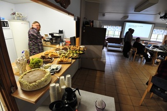 ![]() Jakobstadsnejdens Reservister och Joakim Dahlin uppvaktade föreningen på dess första 60 år av verksamhet och tackade för ett gott samarbete med ett bordsstandard |